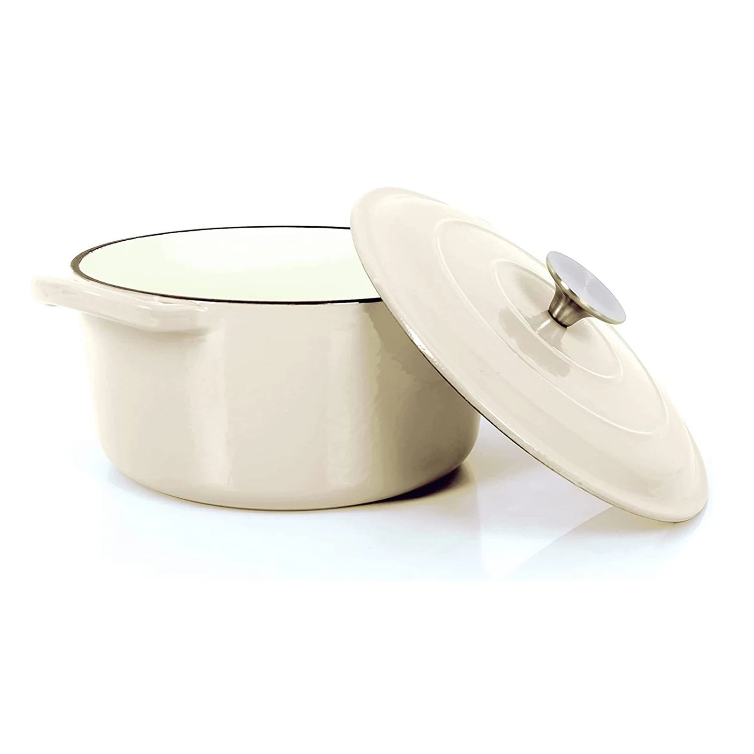 2 Tlg. Set Gusseisentopf Mit Deckel 3.5 L In Creme