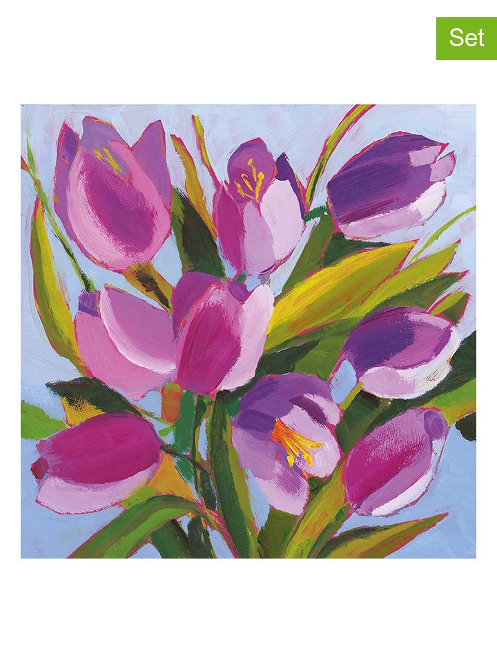 2er-Set: Servietten „Tulips Musee“ In Hellblau/ Lila/ Grün – 2x 20 Stück