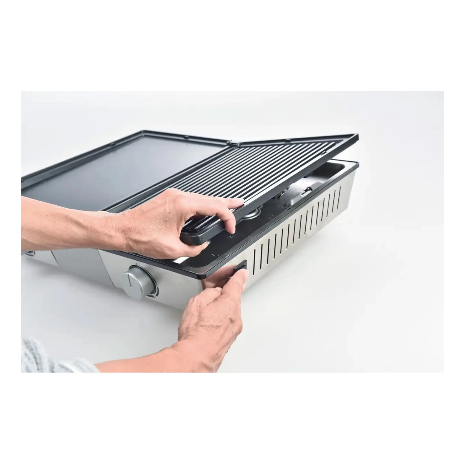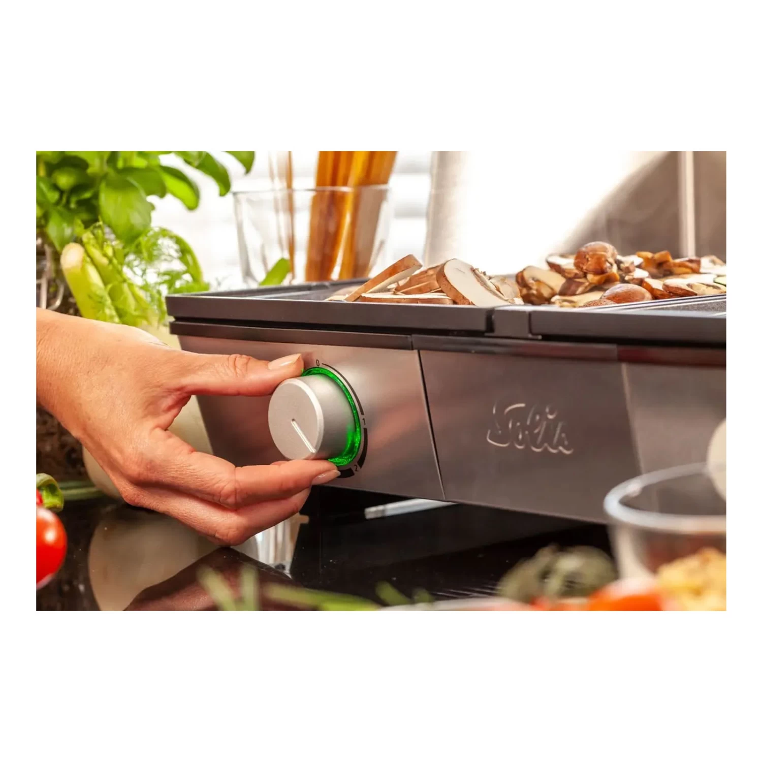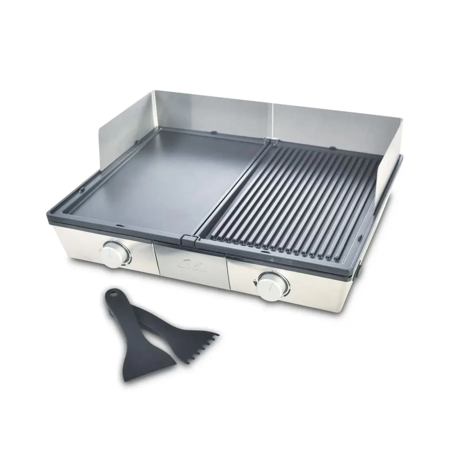 Der kleine Solis Deli Elektrogrill ist ideal für spontanen Grillspaß draußen auf der Veranda oder in der Küche. Setzen Sie die Grillplatten ein, stecken Sie den Stecker in die Steckdose, schalten Sie den Grill ein, lassen Sie ihn aufheizen und los geht’s. Die Temperatur der beiden Grillplatten kann stufenlos und getrennt voneinander eingestellt werden, so dass alle Arten von Grillgut von Fleisch bis hin Gemüse optimal zubereitet werden können. 2.200 Watt Leistung.