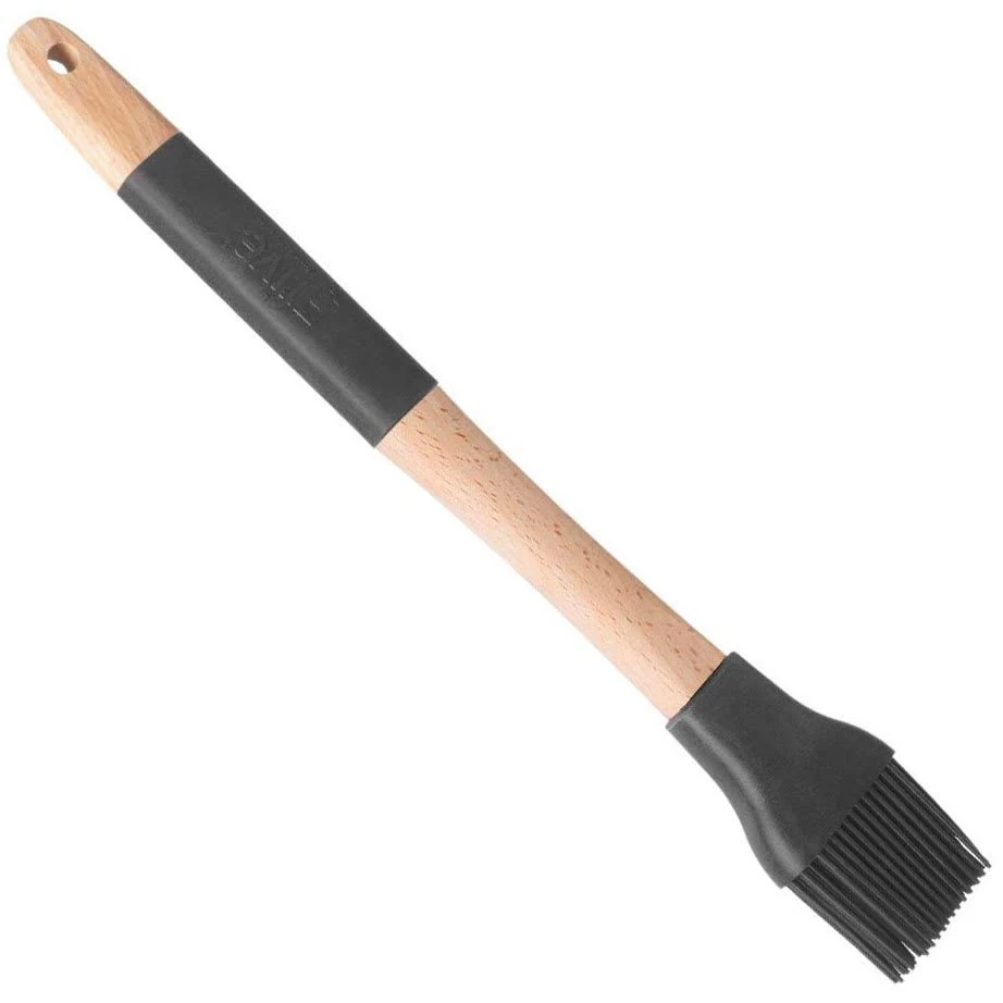 Elegante, originelle Speisenbürste ist ein wichtiger Bestandteil des Geschirrs. Bequem zu verwenden für die Schmierung von Formen, Kuchen und Desserts, dank der Silikonoberfläche der Borsten. Das macht die Reinigung einfach und macht es Ihnen leicht, mit den Pinselkomponenten kein Problem zu haben. Die Kombination aus Holz und Silikon ist ein praktisches und modernes Element, das mit etwas Retro-Eleganz vermischt ist. Es ist ein Löffel, der die Aufmerksamkeit unserer Gäste auf sich zieht und uns mit seiner sehr guten Verarbeitung das Leben leichter macht.