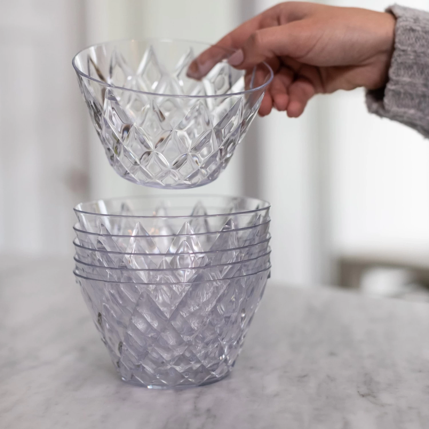 Als wahrhaftiges „Dressing“ für den Salat versprüht CRYSTAL dekorative Eleganz dank einer faszinierenden Diamantschliff-Optik: Die transparenten und hochglänzend polierten Facetten brechen das Licht zu einem lebendigen, attraktiven Funkeln. Statt der gesunden, kalorienbewussten Vorspeise lässt sich in der CRYSTAL Schale natürlich auch ganz ohne schlechtes Gewissen ein sündiges Dessert servieren. •anprechende Diamantschliff-Optik•attraktives Lichtspiel durch Facetten •angenehme Haptik•stapelbar•100% CO2-neutral KOZIOL THERMOPLASTIC