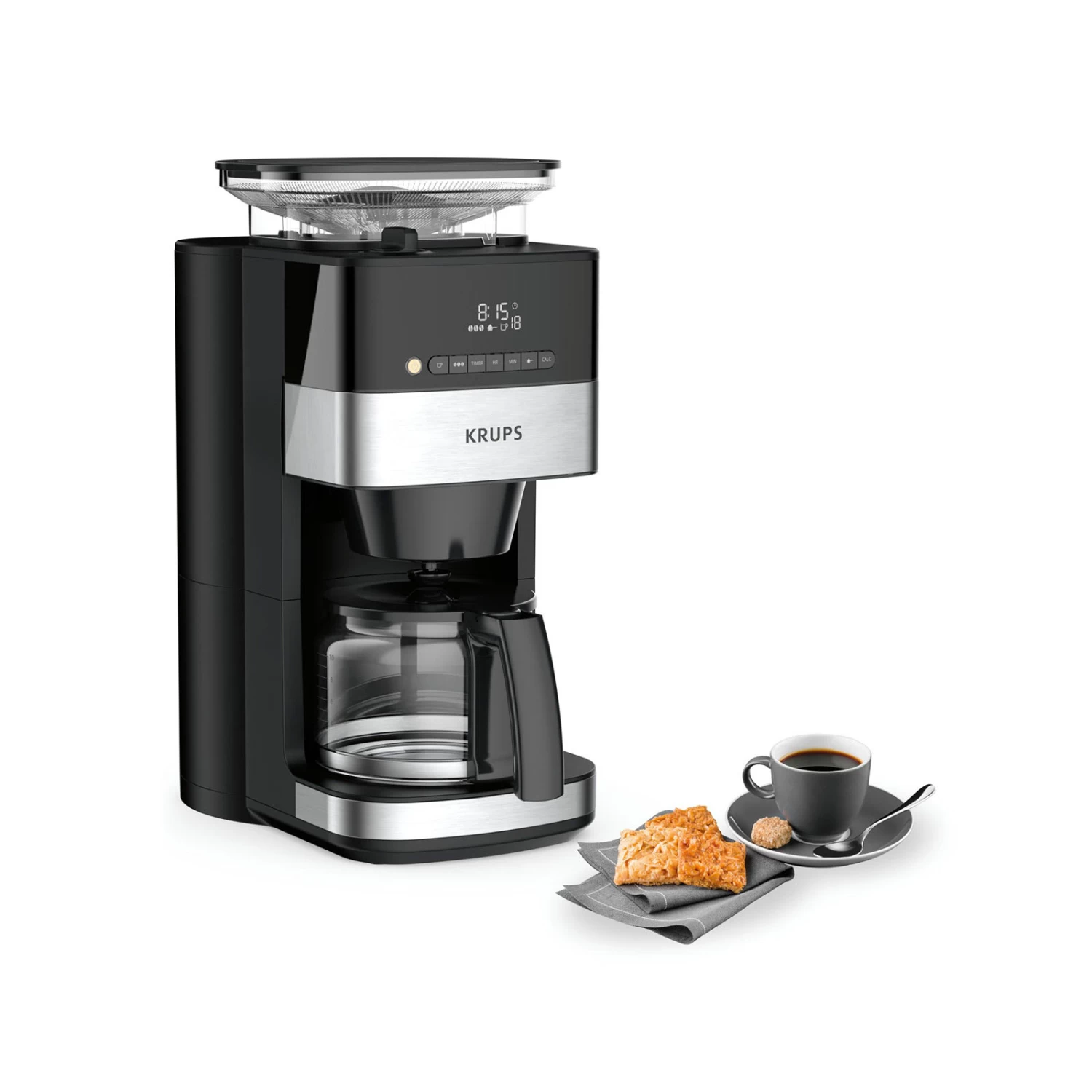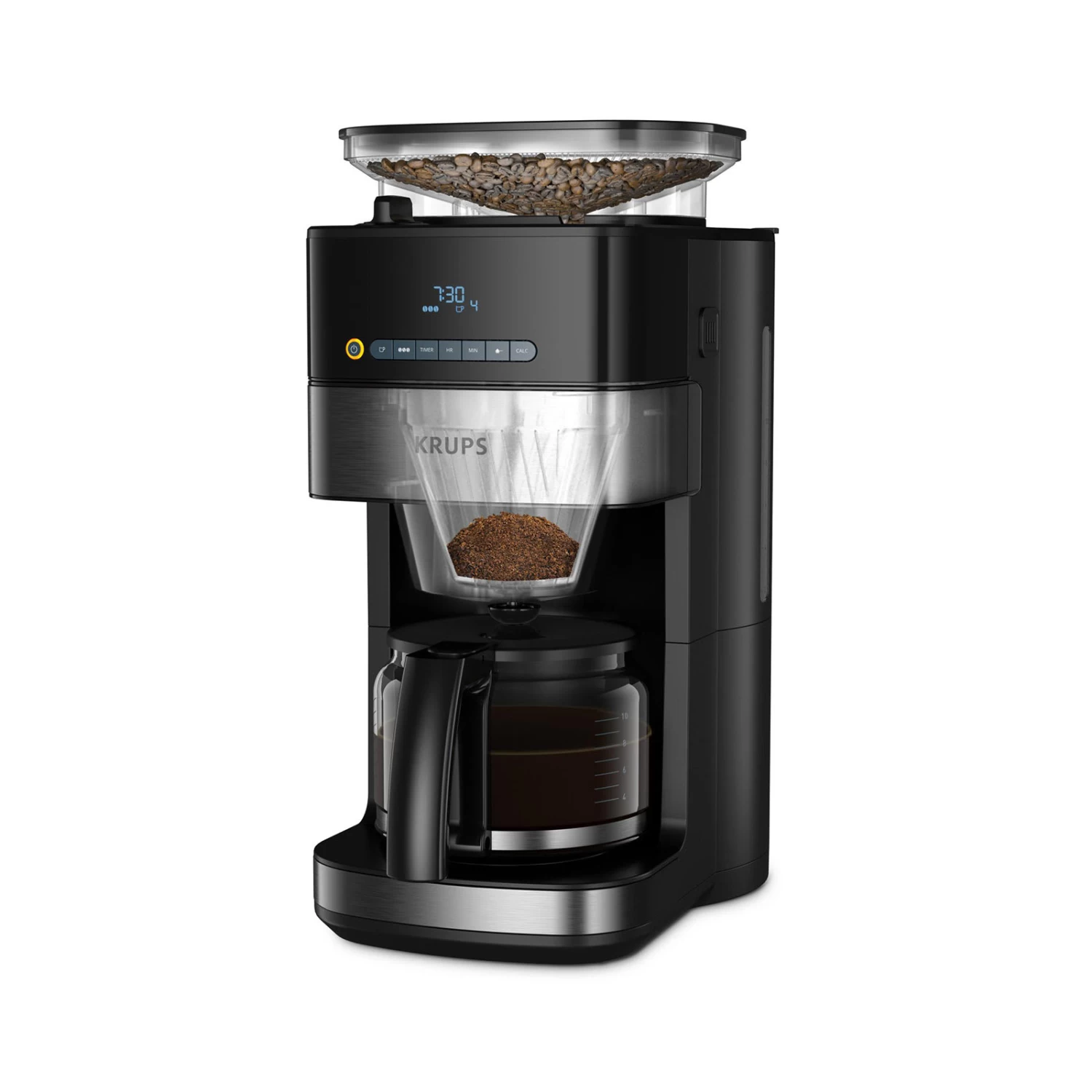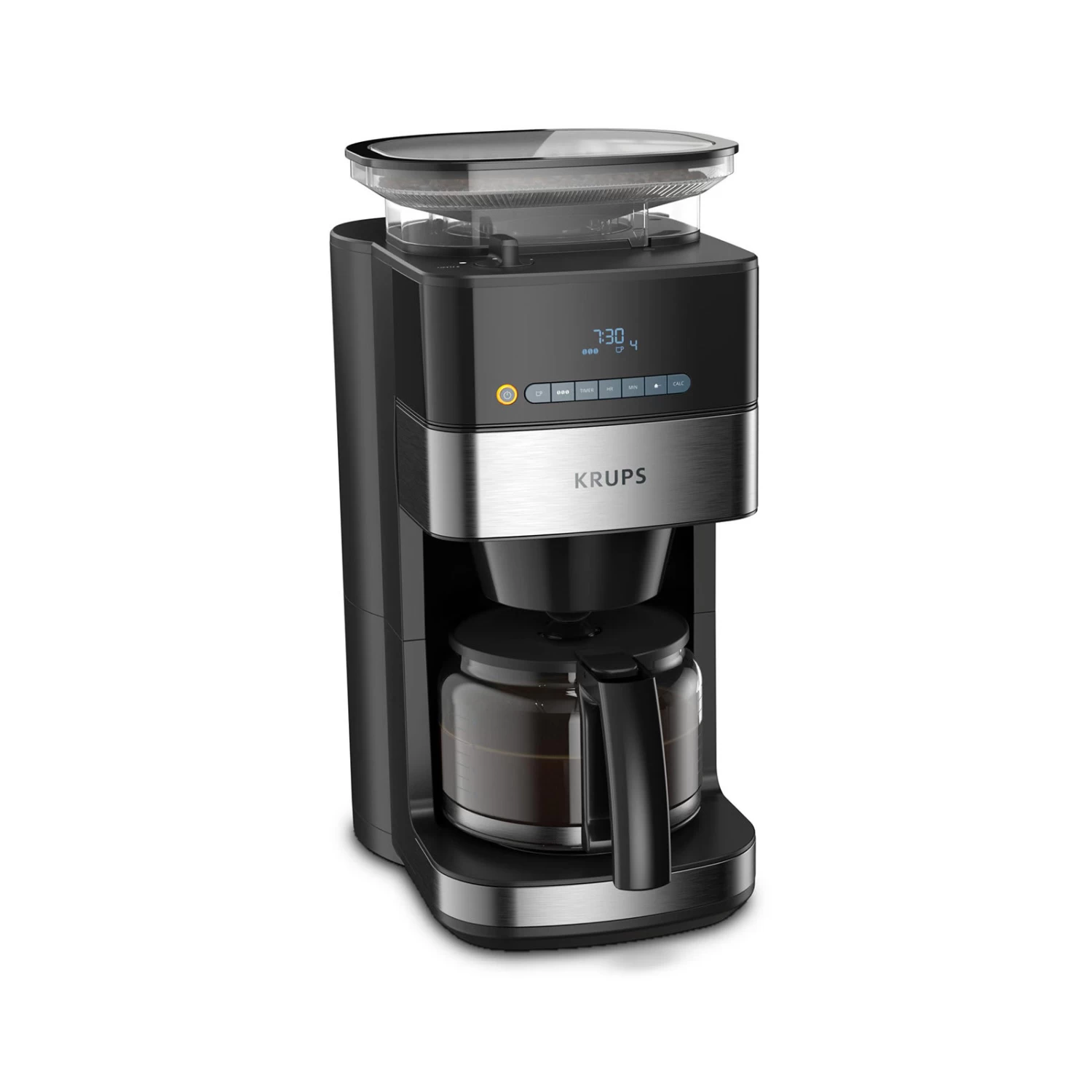 Die KRUPS Grind and Brel Kaffeemaschine mit Mahlwerk macht es zu einem Kinderspiel, den unvergleichlichen Geschmack und Aroma von frisch gemahlenem Kaffee jeden Morgen zu genießen. Füllen Sie einfach ganze Kaffeebohnen ein, wählen Sie Ihre Einstellungen und lassen Sie Grind and Brew den Rest machen. Das Ergebnis ist erstklassiger Kaffee, mit anpassbaren Einstellungen nach Menge und Stärke, um genau auf Ihren Geschmack zugeschnittenes Ergebnis zu erhalten – von weich und mild bis hin zu stark und belebend. 1.000 Watt Leistung.