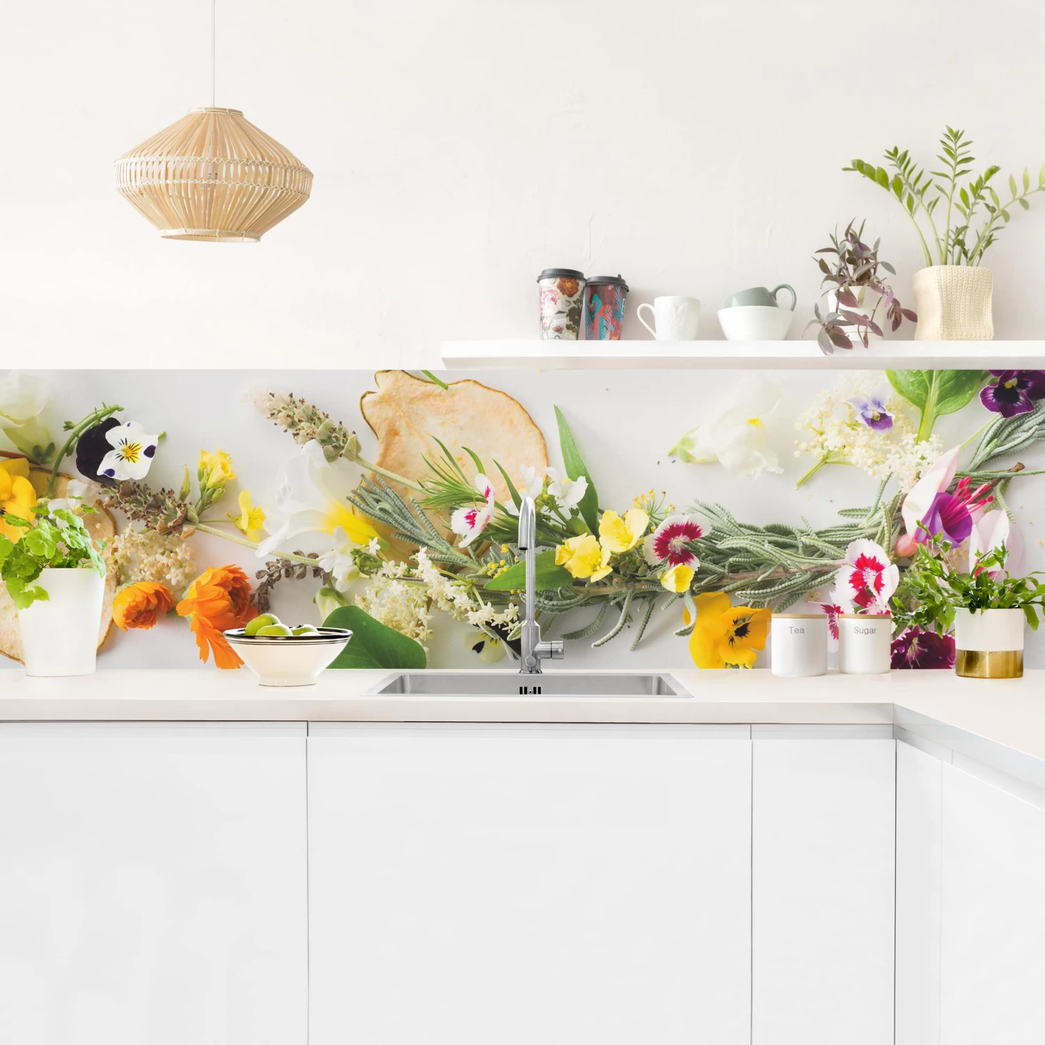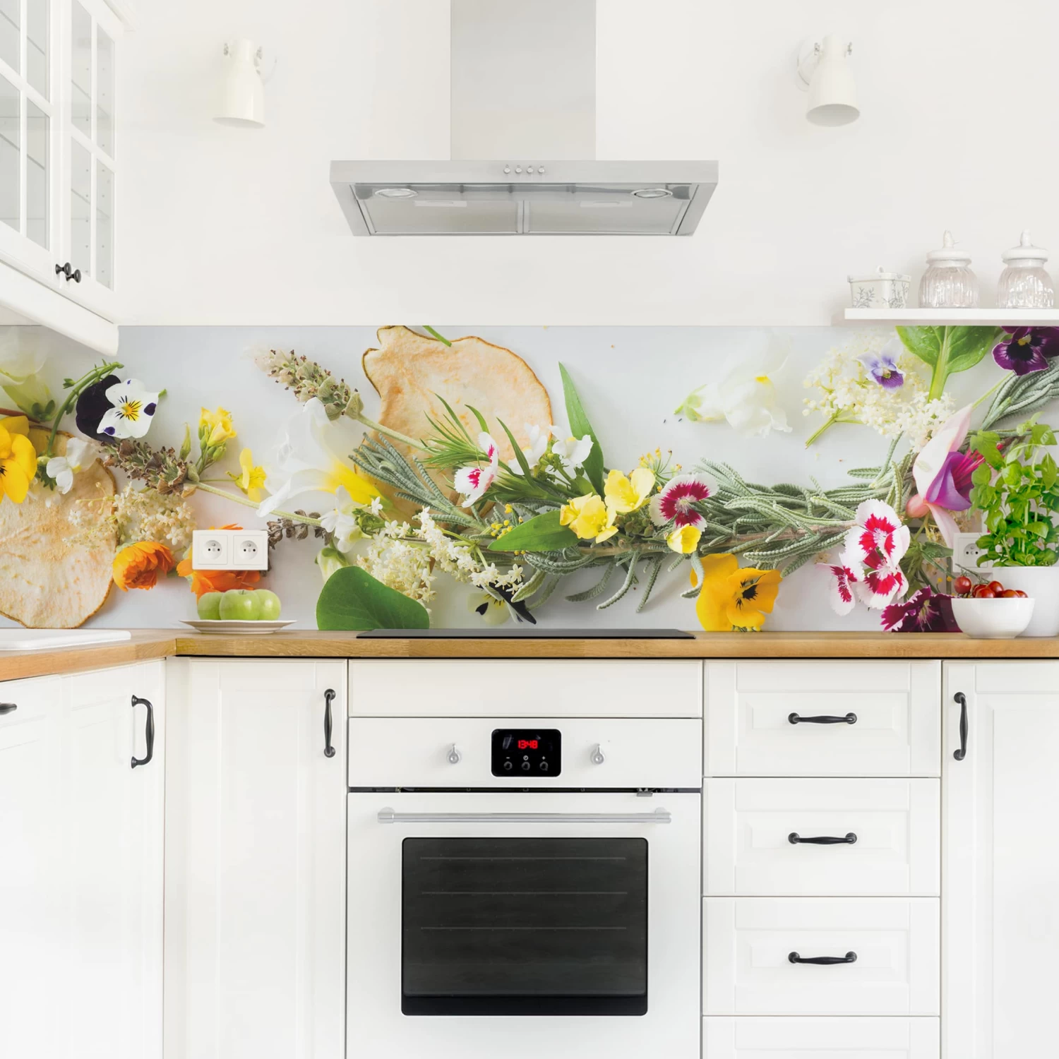Küchenrückwand – Frische Kräuter Mit Essblüten In Bunt