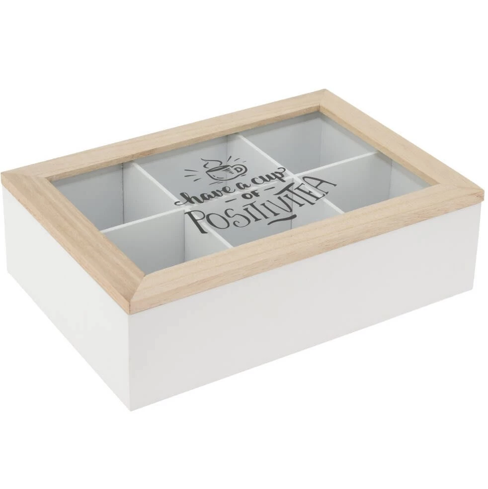 Teebox ist ein praktisches Design für die bekannte Marke Home Styling Collection. Maße des Behälters: Länge 24 cm x Breite 17 cm x Höhe 7 cm Das Produkt eignet sich hervorragend zum Aufbewahren von Tees in Beuteln verschiedener Geschmacksrichtungen – in der Box werden sie sortiert und ordnungsgemäß aufbewahrt. Die praktische Form der Teekocher ermöglicht es Ihnen, Ordnung und Ordnung in den Schränken, auf dem Tisch und den Arbeitsplatten aufrechtzuerhalten und gleichzeitig den Inhalt vor Frischeverlust zu schützen.